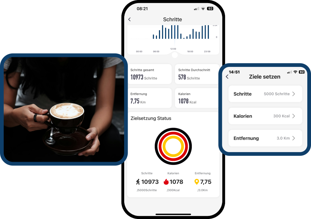Bringe dein körperliches Wohlbefinden dank deines Blaupunkt Smart Rings auf das nächste Level. Lass dich nicht durch eine ständig präsente Smartwatch ablenken, sondern fokussiere dich auf die wichtigen Dinge. Dein Blaupunkt Smart Ring arbeitet ganz unbemerkt im Hintergrund und analysiert Tag und Nacht deine Vitalwerte. Ganz egal, ob du im Studio trainierst, einen Spaziergang machst, in einem stressigen Meeting sitzt oder einfach nur den Sonnenuntergang genießt, dein Smart Ring gibt dir Auskunft über deinen körperlichen und mentalen Zustand. Die App bewertet deine Schlafqualität ebenso wie deine körperliche Fitness und erkennt, wenn du zuviel Stress hast. Mache deinen Blaupunkt Smart Ring zu deinem täglichen Begleiter und Gesundheitscoach.